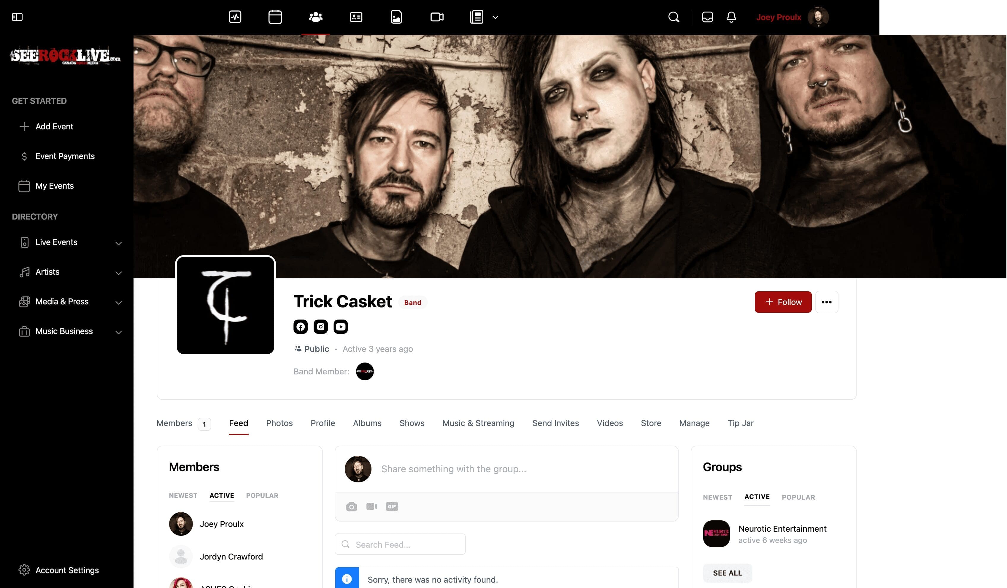 SEEROCKLIVE.com goes beyond individual profiles, offering dynamic social groups to foster collaboration, discussion, and engagement. Members can organize themselves into public, private, or social groups, each with a unique activity feed and member listing tailored to their needs.